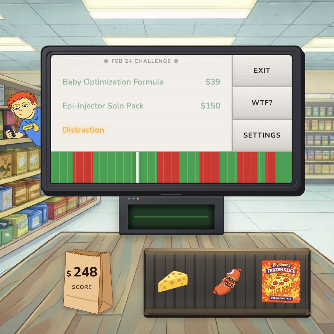 Self-Checkout Tycoon is a free satirical browser game where you try to steal as much as possible from self-checkout without getting caught. It’s about modern retail, where corporations replaced cashiers with unpaid customer labor, then added donation and tip prompts. Made by Labby Labs.